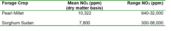 Figure 1. Summary of our laboratory nitrate test results in the past on two major warm season forage crops.