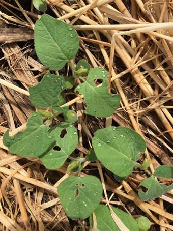 Figure 4. Soybean leaves with true armyworm feeding damage. Photo by Meaghan Anderson, Iowa State University Extension.