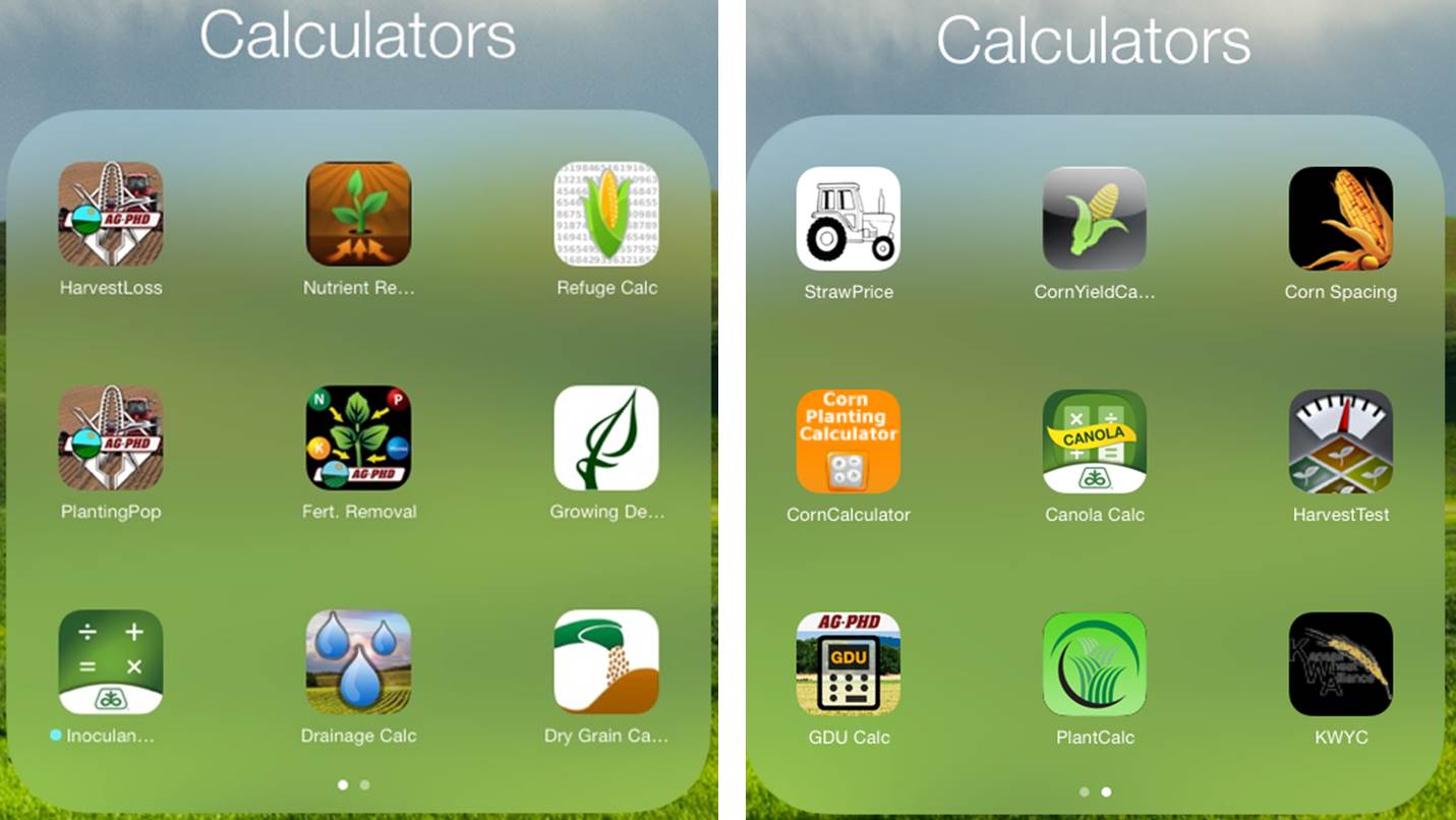ID Tools, Calculators, Seed, Sprayer/Chemical, Fertilizer, New/Weather/Markets, Scouting, Ag Apps (apps I don’t know what to do with).
