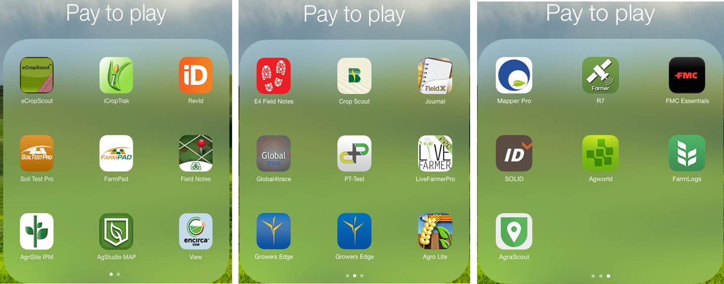 Even after 300+ apps I still have a few of the same original suggestions, like the general rule of thumb “If I cannot figure it out in 3 minutes it’s GONE. An app should be intuitive, easy to use and have a purpose. They only exception to the 3 minute rule is the Scouting and Mapping Apps. Because of their complexity I allow them 5 minutes, and then I am done. Any app with GIS in its name gets much more time”. As far as searching for apps terms such as Corn, Soybean, and Wheat return more games and dietary apps than useful ag apps. Multiple key work searchers is important. If you find a good app go into iTunes or Google Play and check out the other apps created by the developer. Chances are if the developer has made one app you like there will be other well suited to your needs.