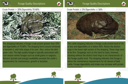 This app just makes me smile. But it really does have some great features and could be quite useful or any cattle producer. By considering the consistency of the pile the quality of the forage/feed can be estimated.