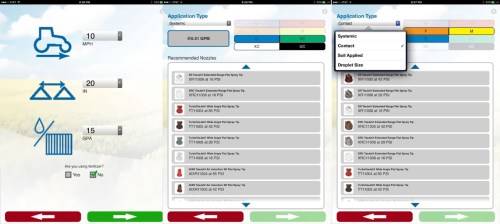 Spray Select was the first app I downloaded. While over the years it has had its fair share of bugs, in my line of work this app is a gem. In a day I may go from spray a contact, to a fertilizer, to a systemic. Not to mention the wide range of GPAs I run at. Being able to to select my speed and GPA then have a list of tips and droplet sizes makes this app critical for my project. I primarily use TeeJet but if you use Hypro check out AgPhDs SprayTipGuide, if you use Greenleaf download NozzleCalc, JohnDeere has an app for their nozzles also.