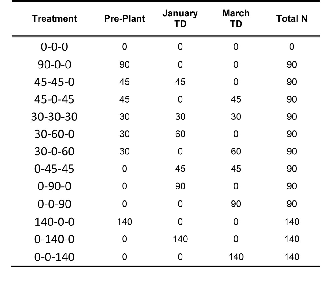 The timing component is important as it shows that we are perfectly capable of applying N in-season and being successful. In-fact this work, and other work is starting to show that contrary to past beliefs, split application is not providing any benefit over a single well-timed application. The source of N of this project needs to be consider as the January top-dress application sat on the surface for almost a month before finally receiving just under two-tenths of an inch of precipitation. We will have another blog coming out soon looking at the impact of N sources urea versus UAN when applied in Fall, January, or March very soon.